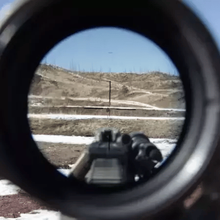 - Reticle: Dual-thickness ballistic crosshair with user-selectable red dot, VSOR rangefinder, and area fire circles
